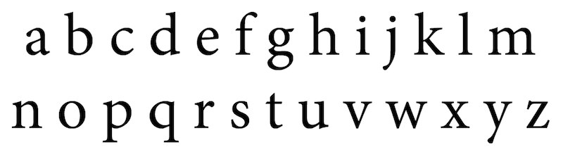 ところで、なぜxなのでしょう?なぜnでもtでもeでもなくx?これはローマン書体の中から、小文字の高さにピタリと収まる文字を消去法で探せばxになるからです。まずbdfghijklpqtyという、アセンダやディセンダのあるものは除外。次にベースラインないしxハイトを越えるものは除外。例えばoやe、nなどは丸い部分があり、視覚調整のために上下に少しハミ出るようになっています。vやwも下が尖っていて、これがベースラインに完全に乗っていると浮いたように見えるので、やはり少し下に伸ばします。また小文字のiのステムも、上端が斜めになっていることが多く、どこにxハイトが来るのか曖昧なので除外。こういう理由で、aceimnorsuvwが消えます。残るのはxとzですが、zはセリフが付いたときにハミ出ることがあるから除外でしょうか。どんな書体でもほぼ確実に上下が水平になるのがxなのです。実に合理的ですね。