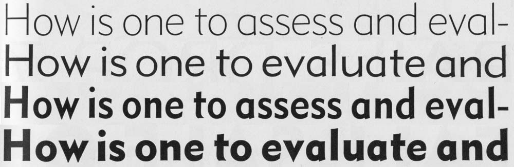 そして各ウエイトやイタリックを混植するときのズレを避けるため、それぞれが全て同じユニットを共有していなければいけないという制約がありました(下画像)。Metroに関してはThinとMediumが同じ字幅、LiteとBlackが同じ字幅という設定です。そういうペアで混植することが多いという考えでしょう。これのせいで細いウエイトは広い、太いウエイトは狭いプロポーションになっているのが分かります。Mediumは特に窮屈な印象がありますね。Novaではこれを取り払い、一番美しいと判断したThinのプロポーションを基準にして各ウエイトを調整しました。もちろんThinにも手を加えています。